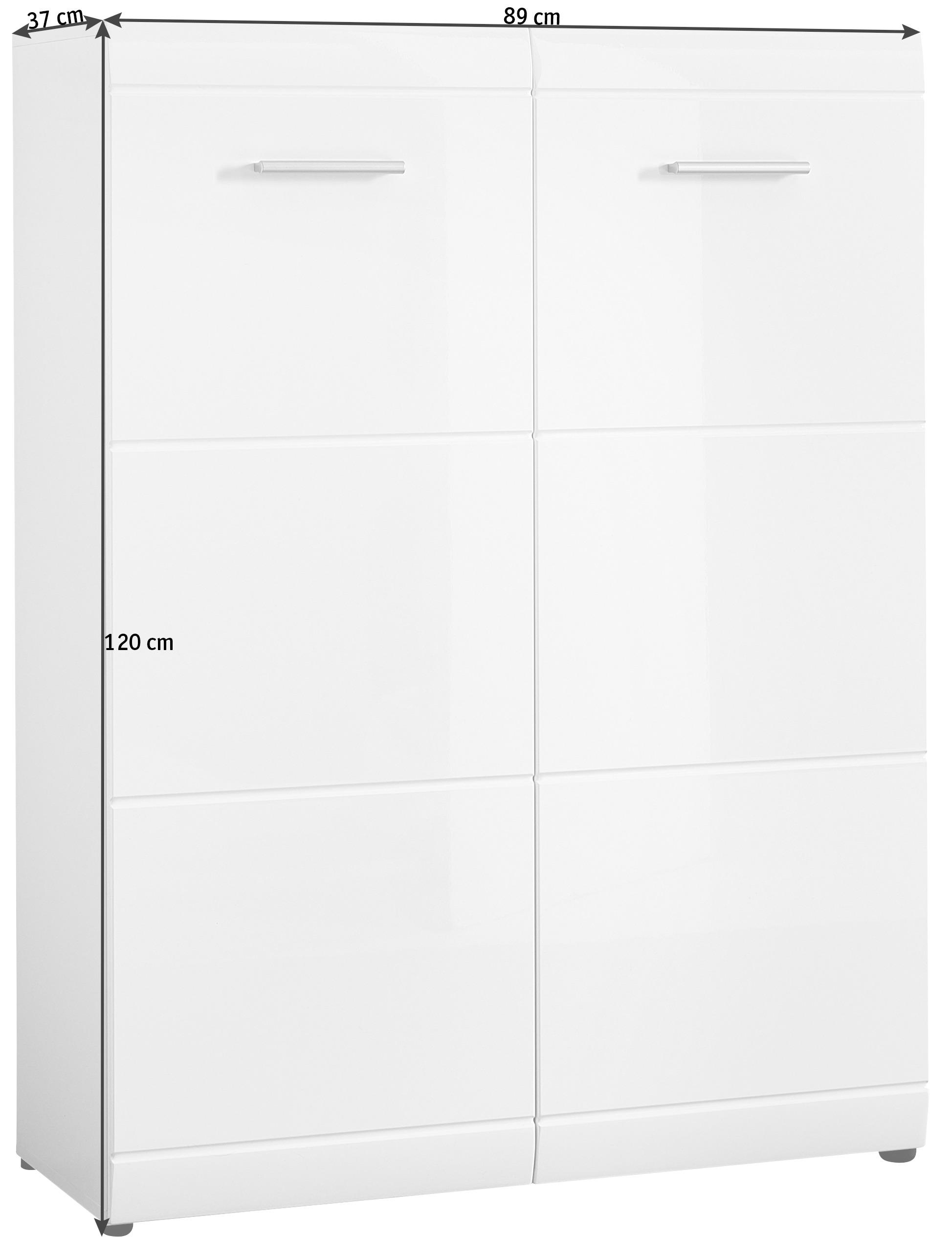 Schuhkommode 34 Flap Schuhschrank Weiss Hochglanz Lack